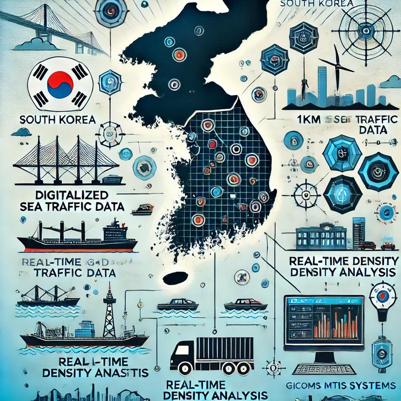 빅데이터를 활용한 해상교통 정보 해상교통망 정보는 5년 8개월 동안 수집된 선박 관련 공공 빅데이터를 기반으로 구축되었다. 약 41만 개의 격자(1km x 1km)로 구성된 데이터를 통해 연안 해역의 교통 밀집도를 시각적으로 확인할 수 있다. 이 데이터는 해양안전종합정보시스템(GICOMS)과 해양교통안전정보시스템(MTIS)을 통해 제공된다.