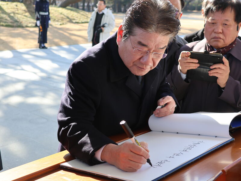 ♦ 강석호 총재는 방명록에 "자유민주주의 수호와 안보지킴이 대국민 봉사활동에 더욱 매진하겠습니다"라는 글을 남기며 결의를 다졌다.