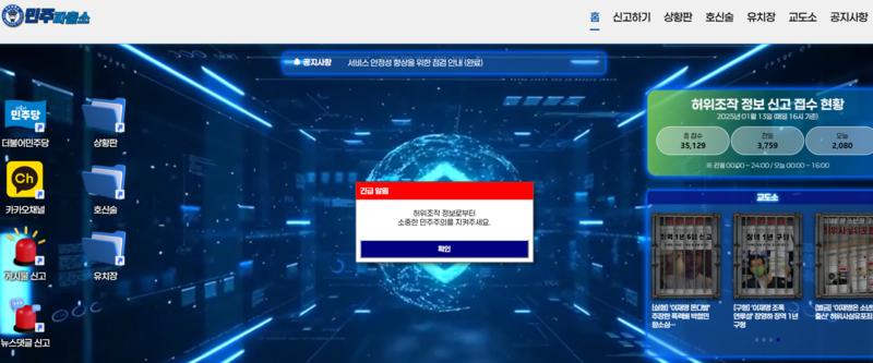 ♦ 민주당이 개설한 반헌법 '민주파출소' 갈무리(https://minjoopolice.com/) 2025. 1. 13.