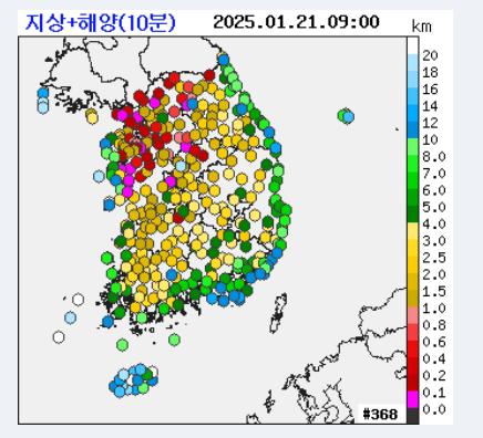 자료=2025. 1. 21. 오전 9시 가시 거리 상황. 기상청 날씨누리 갈무리(https://www.weather.go.kr/w/index.do#toggle).