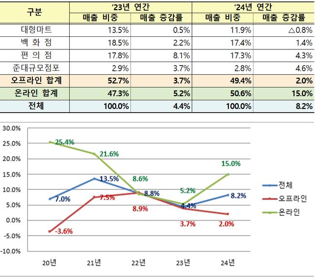 2024년 유통업계 매출 8.2% 증가…온라인 매출 15% 급성장