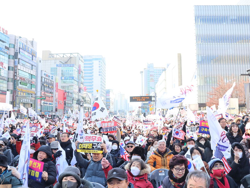 충남 천안서 윤 대통령 탄핵 반대 대규모 집회… 수 많은 2030 세대 참여 눈길