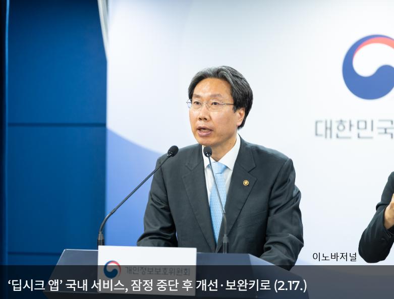 개인정보보호위원회(이하 개인정보위)는 17일 “딥시크 앱의 국내 서비스가 지난 15일 오후 6시부터 잠정 중단됐다”고 발표했다. 이번 조치는 국내 개인정보 보호법(이하 보호법)에 따른 개선·보완을 위한 것으로, 향후 조치를 통해 서비스가 재개될 예정이다.