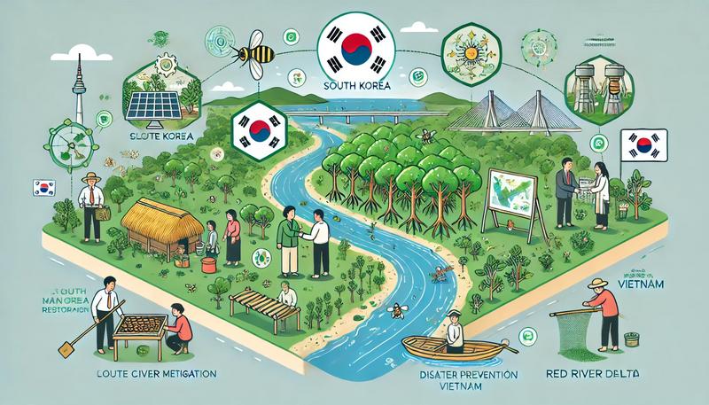 산림청은 2020년부터 2026년까지 총 58억 원을 투입해 베트남 북부 홍강 삼각주 지역(남딘·닌빈)에서 맹그로브숲 복원 및 지역 주민 지원 사업을 추진하고 있다. 현재까지 250ha의 맹그로브숲이 복원되었으며, 이는 태풍 등 자연재해로부터 생태계를 보호하는 데 중요한 역할을 하고 있다.
