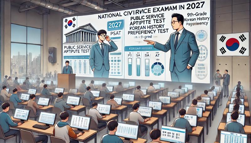 • 2027년부터 국가공무원 9급 공채 필기시험의 한국사 과목이 국사편찬위원회가 주관하는 **한국사능력검정시험(3급 이상)**으로 대체된다.