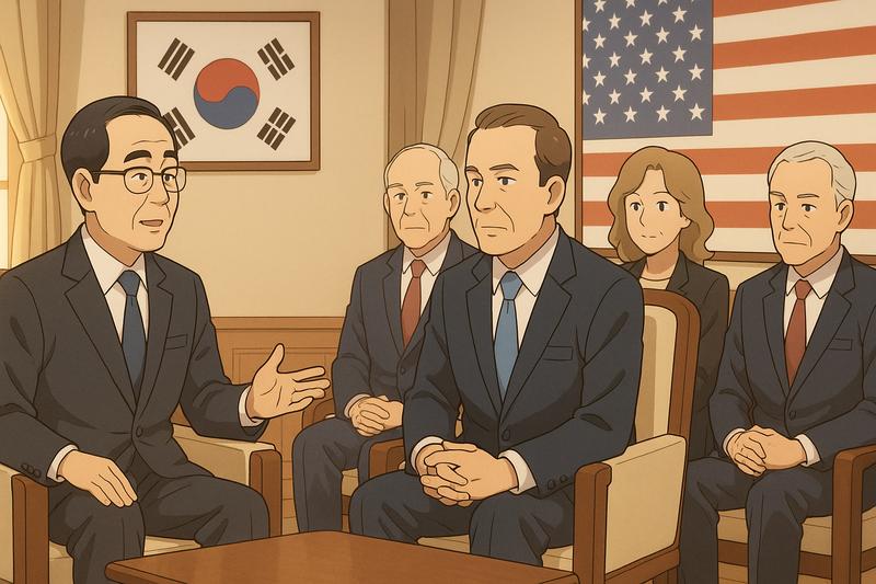 한덕수 대통령 권한대행 국무총리는 4월 23일, 방한 중인 미국 학계 및 전직 고위 인사 대표단을 접견하고, 한미동맹의 발전 방향과 지역·글로벌 정세에 대한 의견을 교환했다. 이번 대표단은 ‘아산플래넘 2025’ 참석을 위해 방한한 인사들로, 커트 캠벨 아시아 그룹 이사장을 비롯하여 폴 월포위츠, 카렌 하우스, 존 햄리, 랜달 슈라이버 등 미국 외교·안보 분야의 핵심 인물들이 포함됐다.