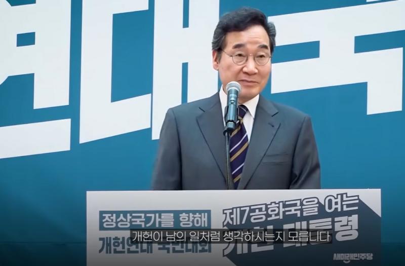 ♦ 이낙연 새미래민주당 상임고문은 2025년 4월 17일 서울에서 열린 개헌연대 국민대회에서 대한민국이 전례 없는 위기 상황에 직면했다고 경고하며, 위기 극복, 정치 개혁, 사회 통합을 3대 국가 과제로 제시하고 이에 자신의 모든 힘을 바치겠다는 뜻을 밝혔다.(사진=이낙연TV 갈무리)