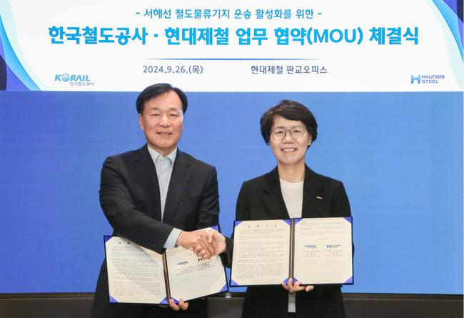 현대제철과 한국철도공사가 지난 9월 26일 현대제철 판교오피스에서 철강재의 국내외 물류 경쟁력 강화를 위한 업무협약을 체결했다.
