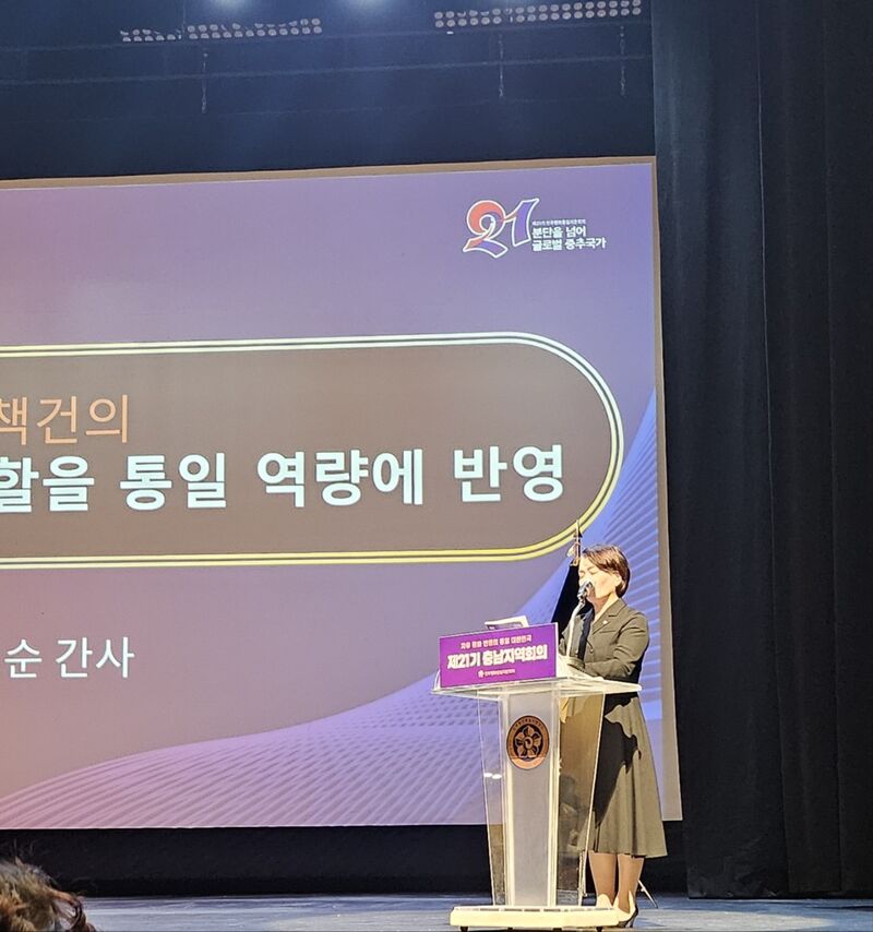 북한이탈주민의 통일 역량 반영에 대해 정책건의안을 발표 중인 충남 서산시협의회 간사 김정순(학교통일교육 전문강사, 북한이탈주민 정착지원 전문관리사) 자문위원
