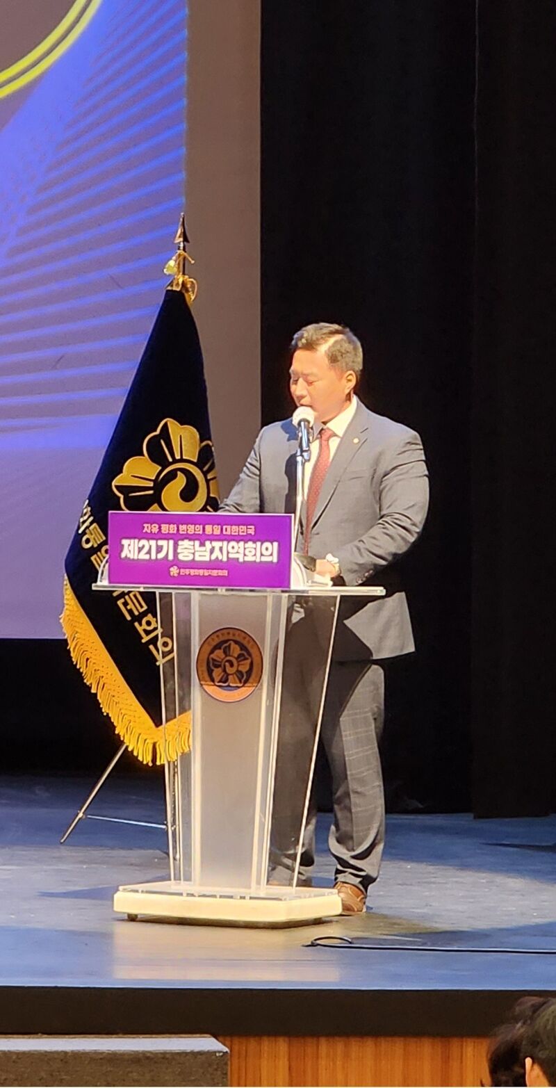 제21기 민주평화통일자문회의 충남지역회의에서 축사하는 김태흠 충남도지사