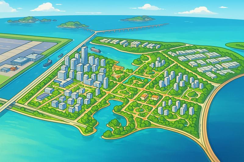 보행자 중심의 녹지축과 교통 동선이 계획되었고, 총 32개소의 공원이 조성된다. 매립공사는 2023년 6월 완료되었고, 현재 1공구 공사가 진행 중이며, 5월과 6월 중으로 2공구(3,550억 원), 4공구(700억 원) 조성 공사도 발주된다.