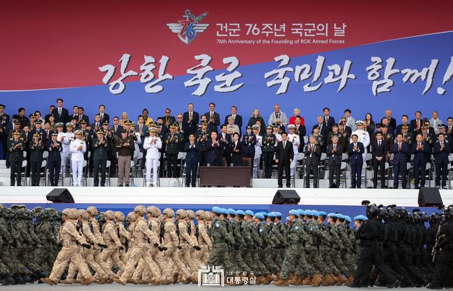 윤석열 대통령은 10월 1일 서울공항에서 열린 건군 76주년 국군의 날 기념식을 주재했다.