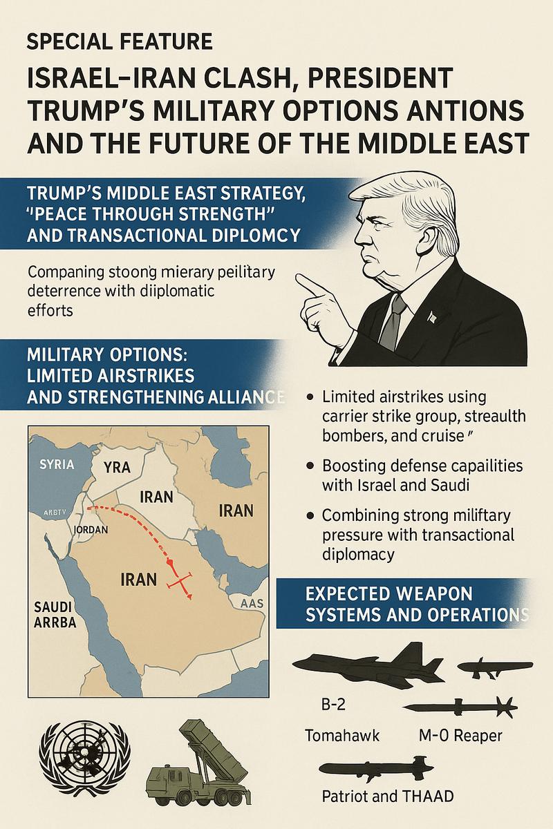 이스라엘과 이란 간 무력 충돌이 점차 격화되는 가운데, 도널드 트럼프 미국 대통령의 대응 전략이 중동 정세의 향방을 가를 중대한 변수가 되고 있다. 트럼프 대통령은 “이란은 핵무기를 가질 수 없다”고 단언하며 강경한 태도를 보였으며, 최근에는 테헤란 시민에게 긴급 대피령까지 발령하며 군사적 압박 수위를 높이고 있다. 본지는 미국 외교안보정책 연구 보고서와 과거 트럼프 행정부의 중동 정책을 분석해, 그가 취할 수 있는 군사적·외교적 옵션과 국제사회의 반응을 종합했다.