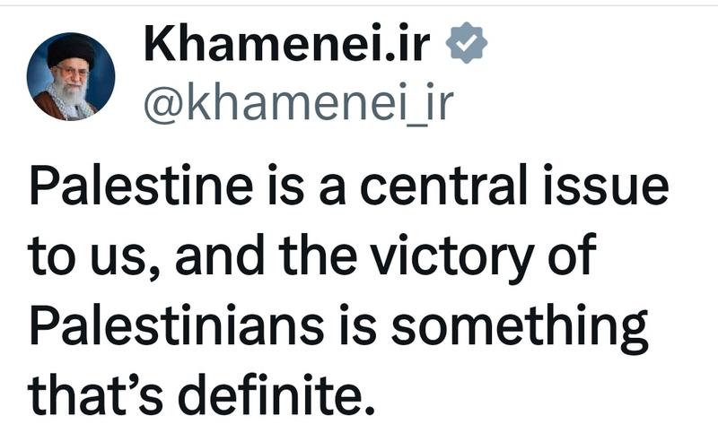 이란의 최고지도자 알리 하메네이는 22일 SNS X(구 트위터)를 통해 "팔레스타인은 우리에게 핵심적 문제이며, 팔레스타인의 승리는 확실하다"고 밝혔다. 이번 발언은 단순히 팔레스타인에 대한 지지를 넘어 이란이 이 문제를 국가의 정체성 및 외교 정책의 중심으로 설정하고 있음을 시사한다.