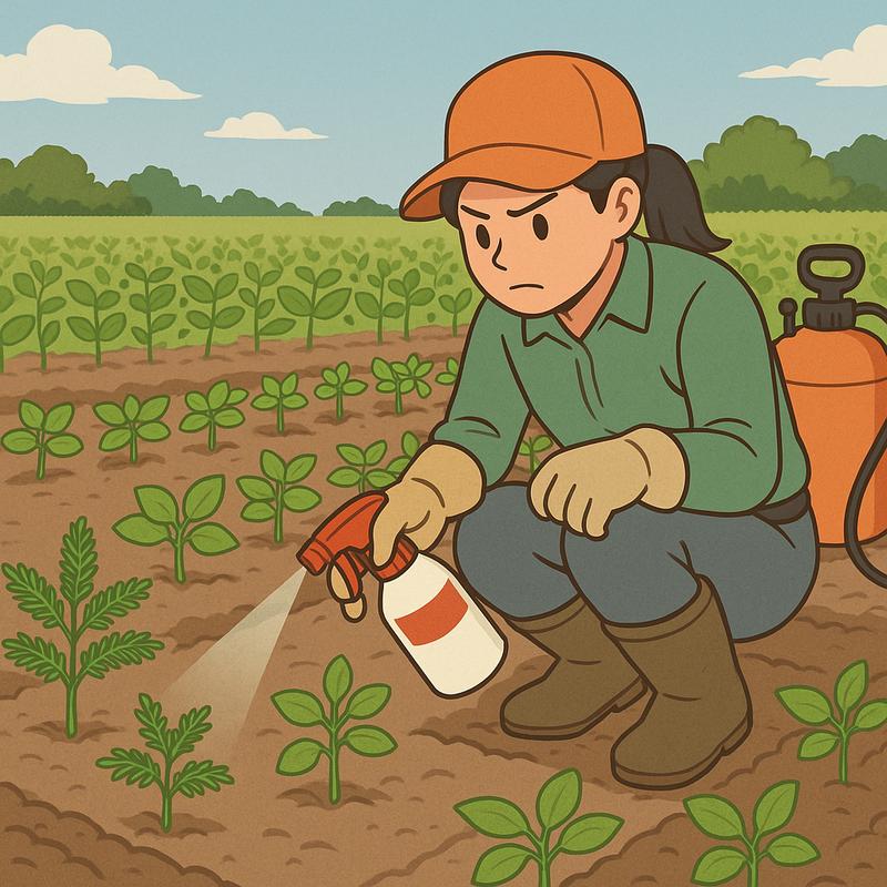 다만, 비선택성 제초제는 작물과 잡초 모두를 고사시킬 수 있어 밭고랑 지면 가까이 뿌리고, 바람이 강한 날이나 비 예보가 있는 날은 피하는 등 사용에 각별한 주의가 요구된다. 또한, 농약허용기준강화제도(PLS)에 따라 등록된 약제를 안전기준에 맞게 사용해야 하며, 관련 정보는 농촌진흥청 농약안전정보시스템에서 확인 가능하다.