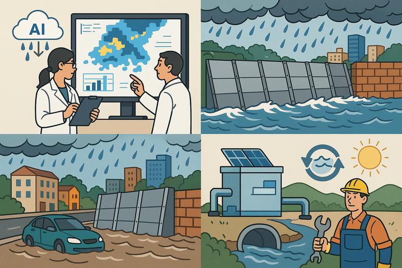 두 번째는 홍수 대응능력 강화 기술로, 하천범람과 도시침수를 줄이기 위한 월류방어벽, 대심도 빗물터널 등 인프라 기술이 포함된다. 특히 월류방어벽은 공장에서 제작한 모듈을 현장에서 조립하는 방식으로 신속한 설치와 대응이 가능하다.