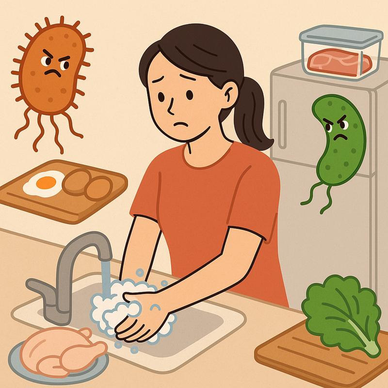 살모넬라균은 주로 오염된 계란이나 육류를 통해 전파된다. 상온에 장시간 방치된 계란액이나 오염된 계란을 만진 뒤 손을 씻지 않고 조리할 경우 교차오염이 발생한다. 계란은 껍질이 깨지지 않은 것을 구매해 냉장 보관하고, 사용 후에는 충분히 가열해 먹는 것이 중요하다.