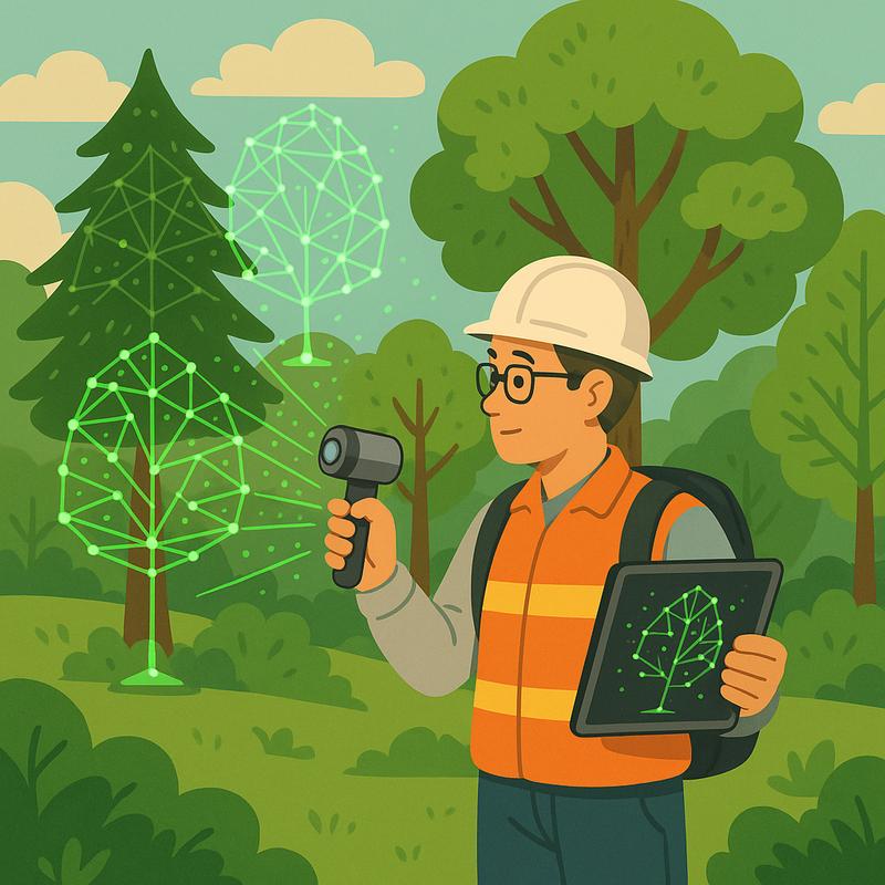 이번 기술은 고정형·핸드헬드형·백팩형 등 다양한 라이다 장비로 산림을 스캔해 개별 나무의 3차원 점군(Point Cloud) 데이터를 수집한 뒤, 이를 기반으로 AI 알고리즘을 적용해 수종을 자동으로 판별하는 방식이다.