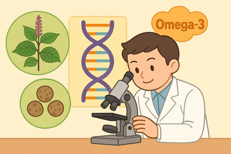 농촌진흥청은 국내외에서 수집한 334종의 들깨 자원을 분석한 결과, 오메가-3 함량이 높은 종자에서는 ‘지방산 불포화효소3(FAD3)’ 유전자에 G염기 변이가 발견되었으며, 이는 리놀레산 함량 감소와 유의미한 관련성을 보였다. FAD3 유전자는 리놀레산을 리놀렌산으로 전환하는 데 관여하는 유전자로, 불포화지방산의 합성과 직접적인 연관이 있는 것으로 알려져 있다.