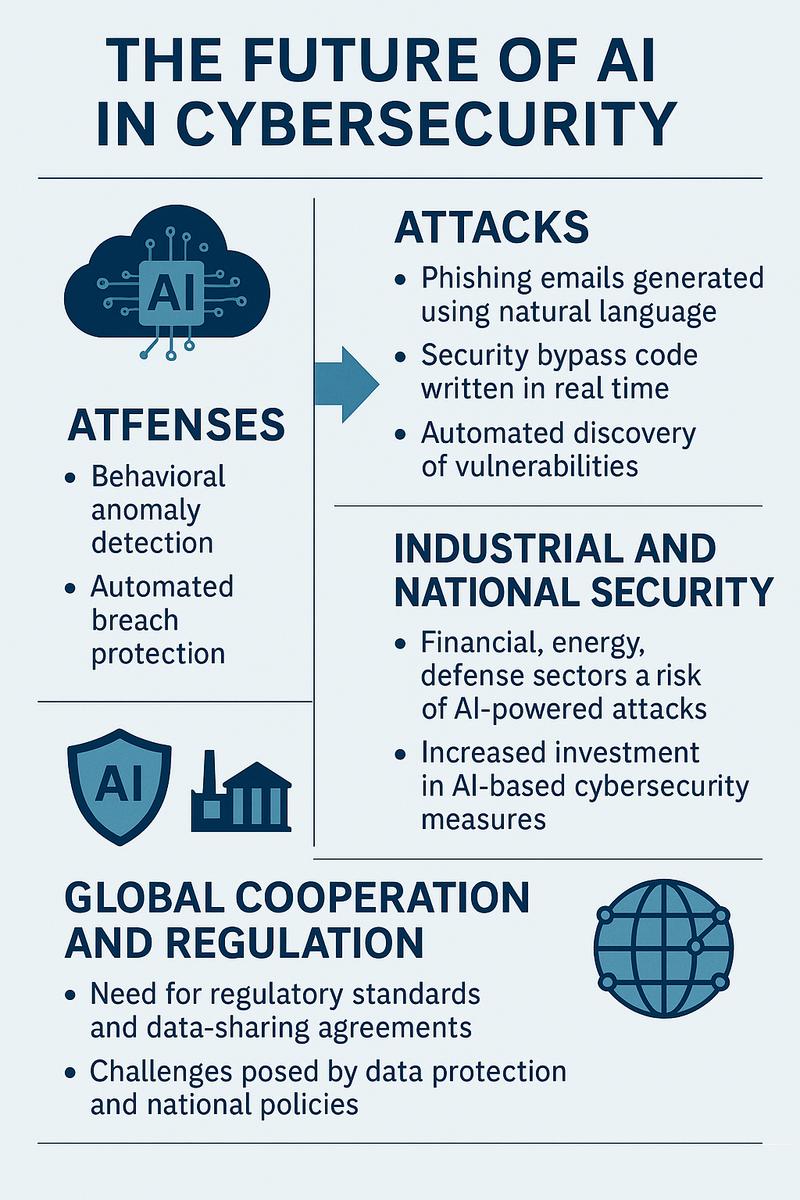반대로 보안 기업과 정부 기관은 AI를 활용해 행위 기반 이상 탐지(behavioral anomaly detection), 자동 침투 차단 시스템, 실시간 위협 인텔리전스 공유 플랫폼을 개발하며 대응 속도를 높이고 있다.