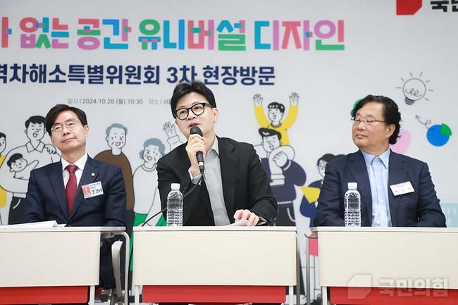한동훈 국민의힘 당 대표는 28일 서울에서 열린 격차해소특별위원회의 3차 현장 방문 행사에서 유니버설디자인 수상 건물을 방문하고, 장애인과 비장애인을 아우르는 포용적 사회를 위한 인식 전환의 필요성을 강조했다.