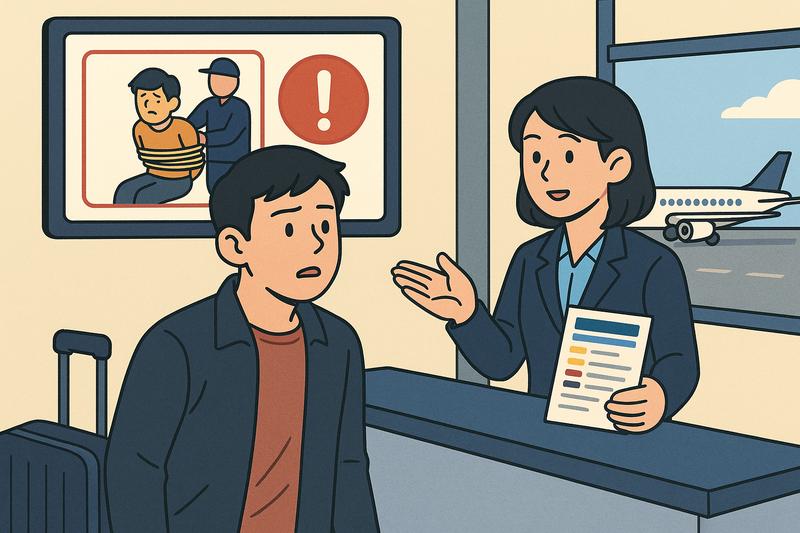 또한 탑승 게이트 앞에서는 항공사 직원이 여행 및 취업 목적의 승객에게 안내문을 배포하고, 현지에서 피해를 입었을 때 신고할 수 있는 연락처와 방법도 함께 안내한다.