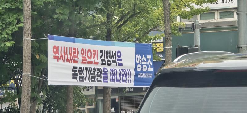 최근 충청남도 천안시 독립기념관 인근에 ‘역사 내란’는 문구가 적힌 현수막이 등장해 논란이 일고 있다. 해당 현수막은 양승조 전 충남도지사의 이름으로 게시됐다.