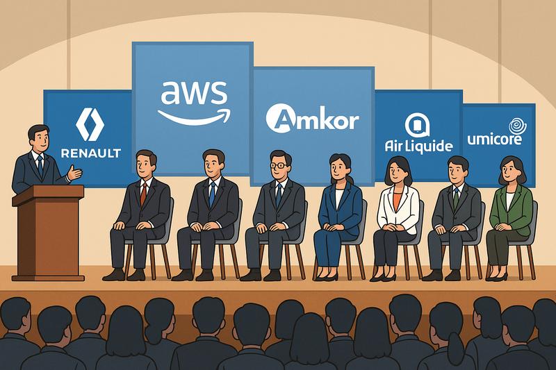 산업통상자원부가 29일 경주 예술의전당에서 열린 ‘글로벌 기업 투자 파트너십’ 행사에서 아마존웹서비스(AWS), 르노, 앰코테크놀로지, 코닝, 에어리퀴드, 지멘스헬시니어스, 유미코아 등 7개 글로벌 기업이 향후 5년간 총 90억 달러(약 13조 원)를 한국에 투자할 계획을 발표했다고 밝혔다. 이날 행사에서는 외국인직접투자(FDI) 6억6천만 달러의 신규 신고도 함께 이뤄졌다.