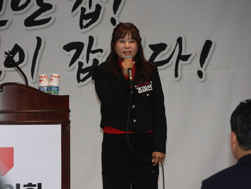 조미선 국민의힘 천안시갑 당협위원장이 당원콘서트 개회를 선언하고 있다.
