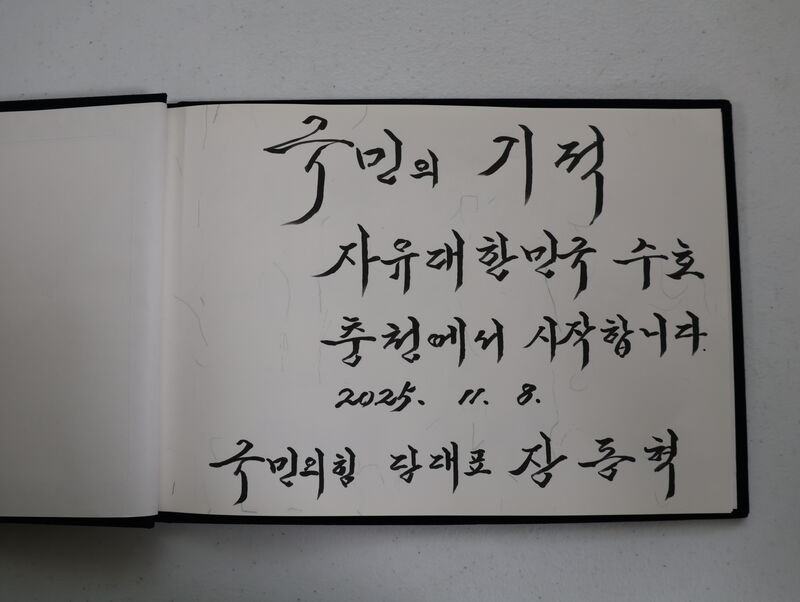 장동혁 국민의힘 당대표 방명록 문구에는 충청도가 가진 정치적 요충지로서의 위상이 뚜렷하게 드러나 보인다.