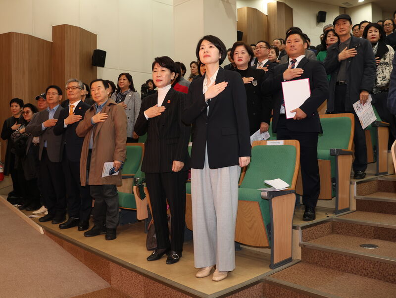 ♥ 국기에 대한 경례 중인 한지아 국회의원(우)과 황드보라 이사장(좌) 그리고 내외귀빈