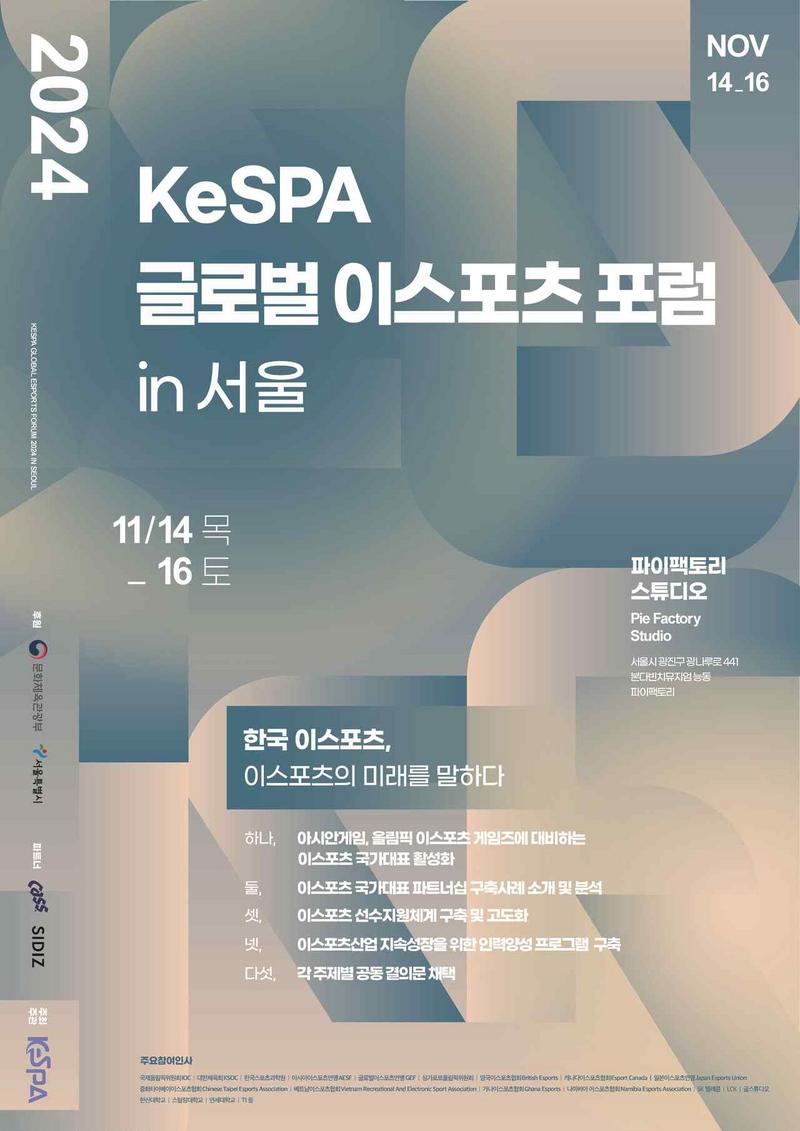 문화체육관광부가 후원하고 한국이스포츠협회(KeSPA)가 주최하는 ‘2024 글로벌 이스포츠 포럼 인 서울’이 11월 14일부터 16일까지 서울 광진구 파이팩토리 스튜디오에서 열린다. 이 행사는 세계 이스포츠 산업을 선도하기 위한 포럼으로, 국제올림픽위원회(IOC) 올림픽 이스포츠 부서장을 비롯해 '페이커' 이상혁 선수 등 국내외 전문가 40여 명이 참석할 예정이다.