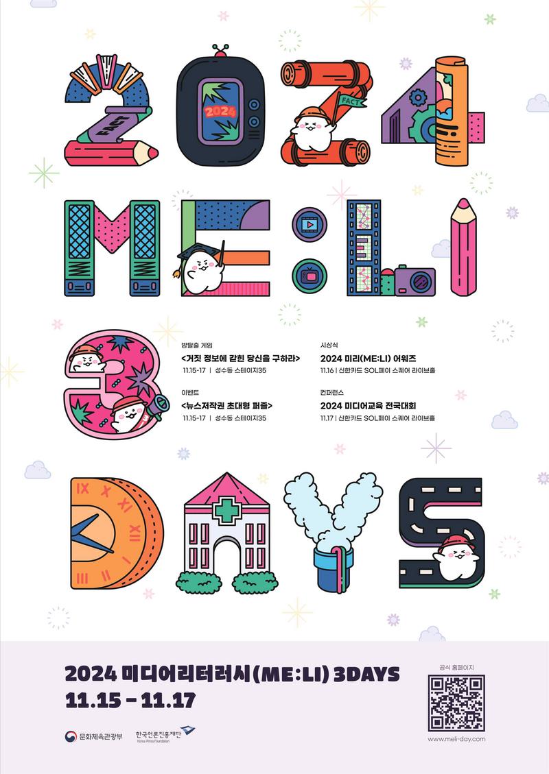 문화체육관광부는 한국언론진흥재단과 함께 11월 15일부터 17일까지 서울 성동구 스테이지35 성수와 마포구 신한카드 솔(SOL)페이 스퀘어에서 미디어교육 특별주간 ‘2024 미리(ME