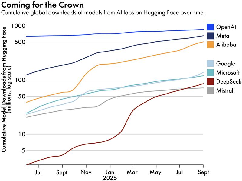 중국 vs 미국 오픈소스 AI 다운로드/성능 비교 차트션 | ![]() |