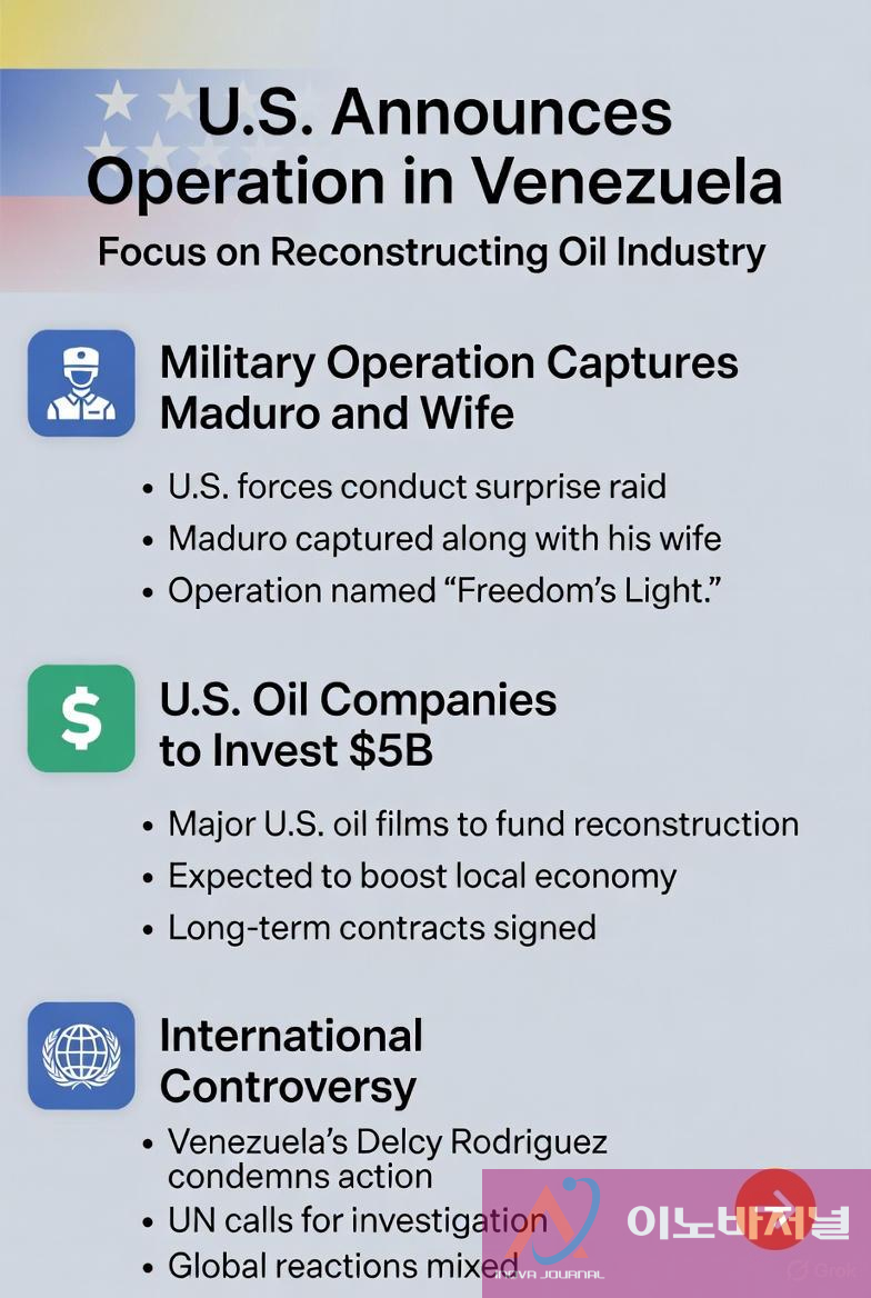 이노바저널은 이번 사태를 통해 미국의 헤게모니 재확인과 자원 중심 외교가 재부상한 신호로 보고 있으며, 베네수엘라의 정치·경제 불안정이 장기화될 가능성을 주시하고 있다.