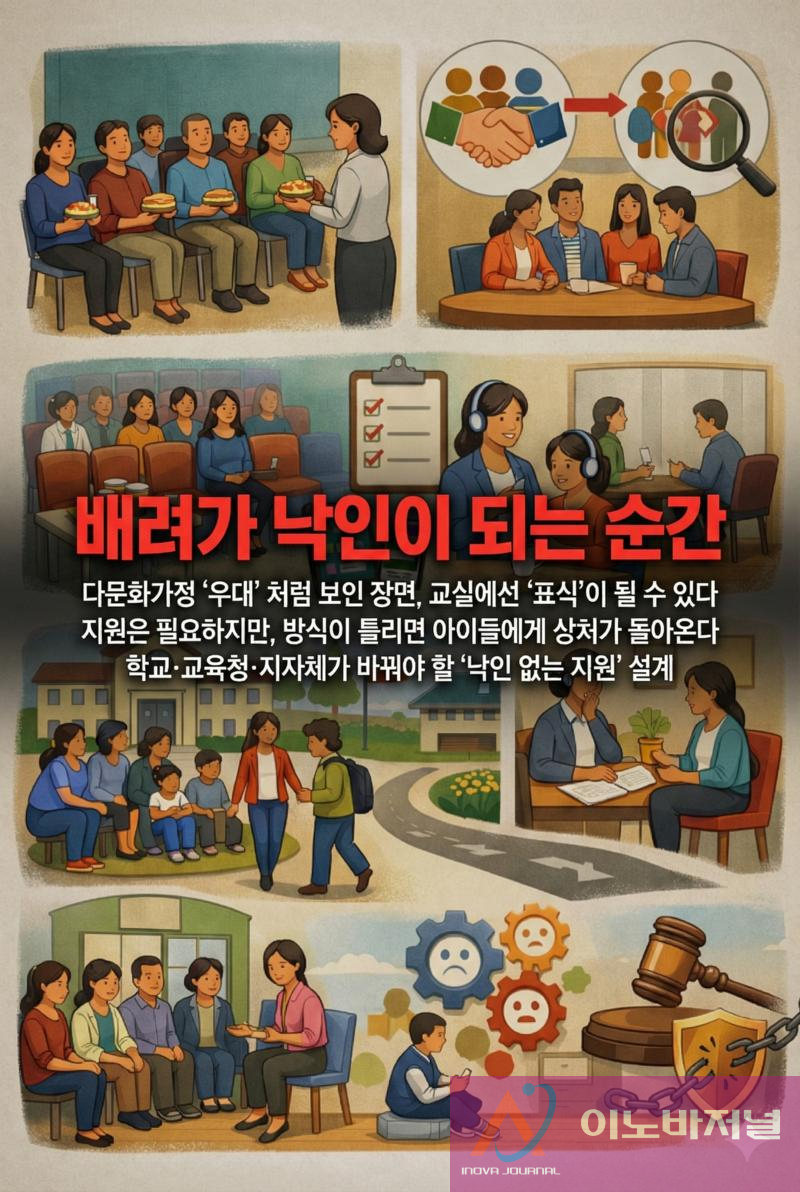 이 사건은 한 학교의 작은 장면처럼 보이지만, 다문화 지원이 현장에서 얼마나 쉽게 배려→낙인으로 뒤집힐 수 있는지 보여준다. 교육은 차별을 없애는 가장 강력한 장치여야 한다. 그러려면 지원의 존재를 숨기라는 뜻이 아니라, 지원이 ‘드러나는 방식’을 재설계해야 한다. 아이들이 교실에서 상처받지 않도록, 학교는 ‘선의’가 아니라 ‘구조’로 안전을 만들어야 한다.