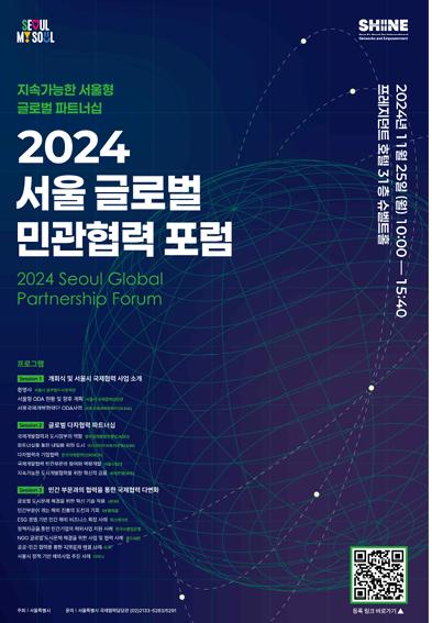 서울시는 11월 25일 오전 10시, 중구 프레지던트호텔에서 ‘2024 서울 글로벌 민관협력 포럼’을 개최한다. 이번 포럼은 다자개발은행(MDB), 국내외 기업, 공공기관 및 민간단체 등 150여 명의 전문가가 참여해 서울형 공적개발원조(ODA)의 발전 방향과 국제협력 방안을 논의하는 자리다.