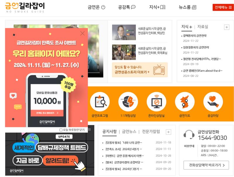 자료 금연길라잡이 홈페이지 캡처(https://www.nosmokeguide.go.kr/index.do)