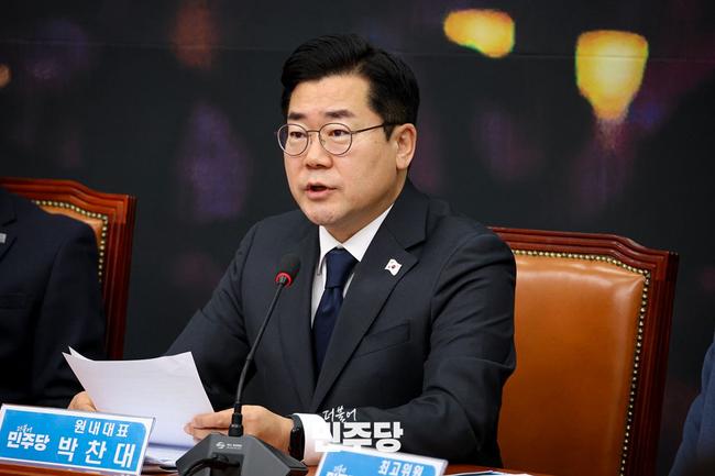 또한, 국민의힘의 헌법재판관 청문회 불참과 한덕수 총리에게 특검 거부를 건의한 행위를 “내란 공조와 공범 행위”로 규정하며, “국민의힘이 내란 수괴를 비호하고 탄핵 절차를 방해하고 있다”고 비판했다. 박 원내대표는 국민의힘 해산을 요구하는 국민 청원에 31만 명 이상이 동참한 사실을 언급하며 “국민의 목소리를 계속 외면한다면 국민의힘은 역사 속에서 사라질 것”이라고 경고했다.
