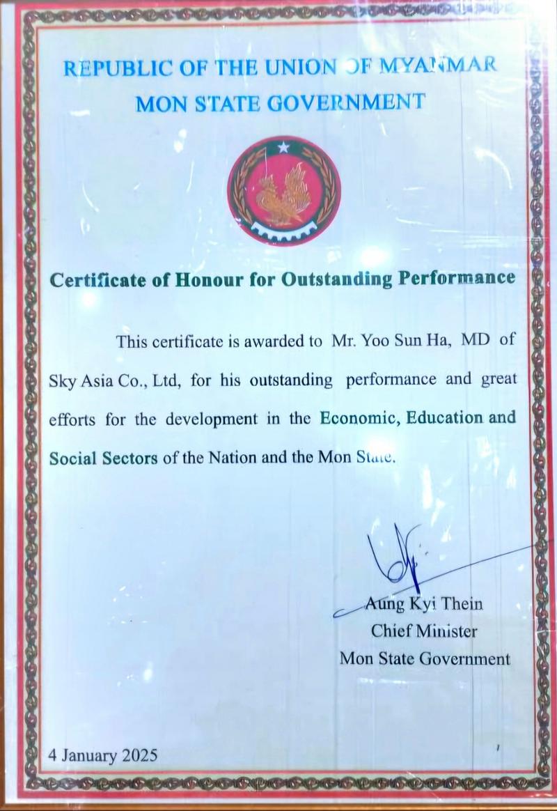 미얀마 명예 시민상을 받은 유선하 전 회장의 수상은 국경을 초월한 노력과 헌신이 인정받은 사례로, 두 나라가 더욱 긴밀히 협력하며 미래를 향해 나아가는 이정표로 기록될 것이다.
