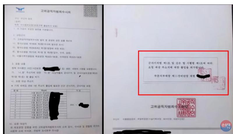♦ 공수처가 판사 쇼핑에 이어 대통령 관저 출입 허가를 위해 위조 공문서를 작성했다는 의혹이 제기되며 대한민국 사법 체계의 근간이 흔들리고 있다. 국민의힘은 이를 “조직적으로 준비된 기획 범죄”로 규정하며 강력히 반발했다.(자료=손상대TV 갈무리)