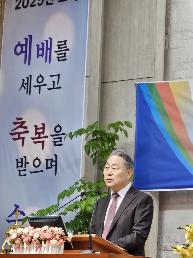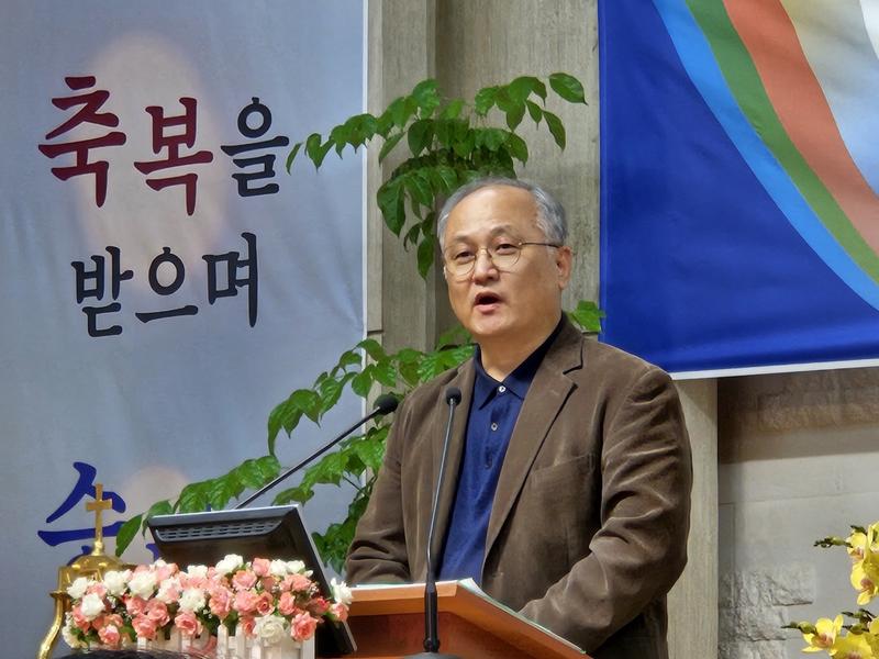 ♦ 민경배 박사(전 서울장신대 총장, 연세대 교수)는 축사를 통해 김 대표 총재의 취임을 축하하며 그의 리더십에 대한 기대를 표했다.(사진=민경베 박사, 윤주남 목사 자료 제공)