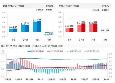 9월 2주 아파트 매매·전세가격 상승세 지속, 수도권 강세