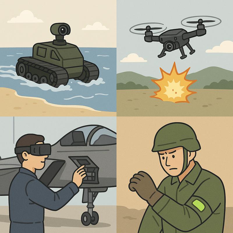 핵심 투자 분야는 AI, 반도체, 드론, 로봇 등 방위산업 핵심 기술이며, 전체 예산의 63%인 720억 원이 집중 투입된다. 수륙양용 기동정찰로봇, 초소형 자폭드론, 항공정비 실감형 XR훈련 플랫폼 등 실용 중심 과제가 포함됐다.