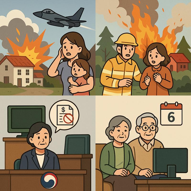 전투기 오폭과 대규모 산불로 인해 특별재난지역으로 선포된 9개 지역 주민을 대상으로 6개월간 텔레비전 방송 수신료가 면제된다.
