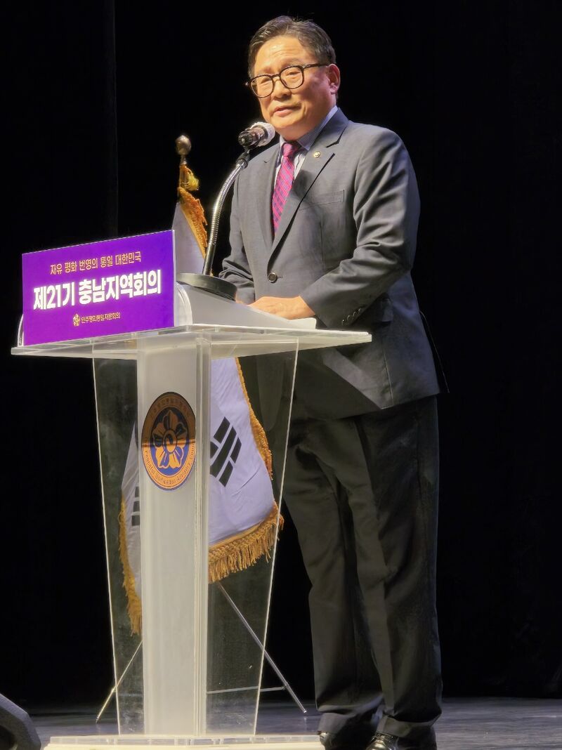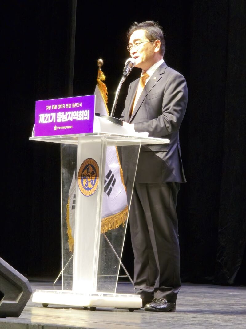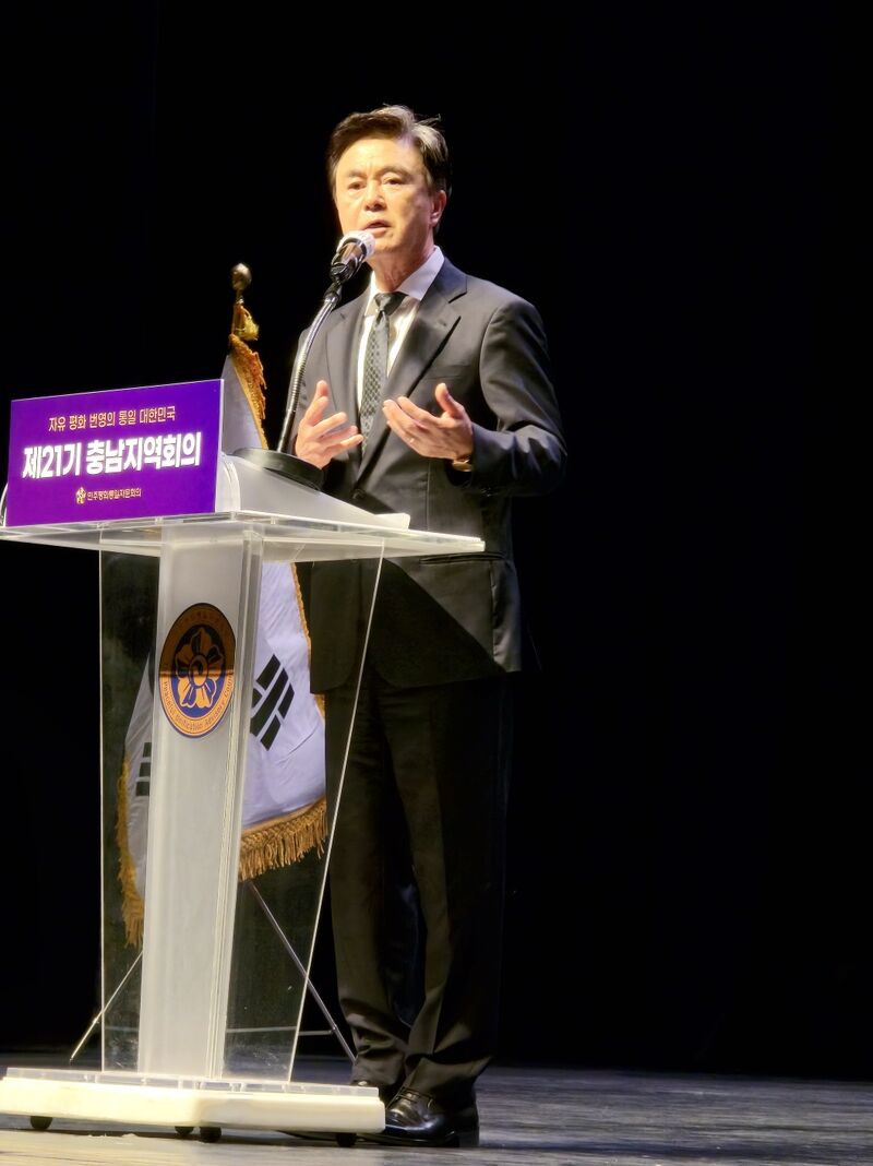 제21기 민주평화통일자문회의 충남지역회의에서 축사하는 김태흠 충남도지사