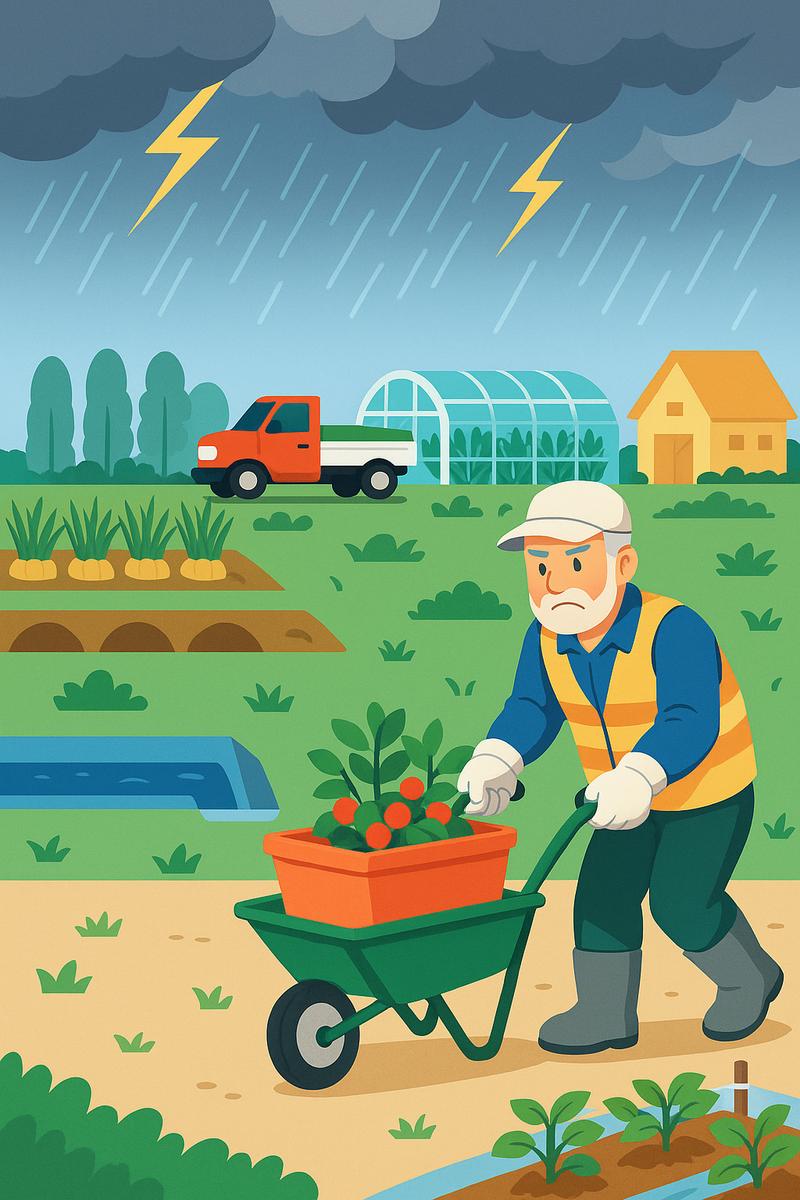 시설물 점검: 온실 골조나 비닐 고정, 축사 지붕, 창고 벽체 등은 사전 보강하고, 전선 피복 확인 및 감전 사고 예방 조치가 필요하다. 사료 보관은 방수포로 덮어 습기 차단을 권장한다.