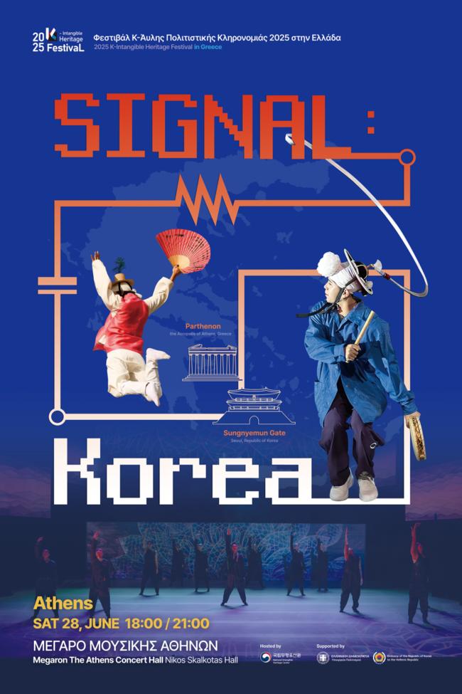 이번 공연은 국립무형유산원이 주최하고, 그리스문화부와 주그리스한국대사관이 후원한다. 공연은 농악, 탈춤, 줄타기, 태평무 등 국가무형유산을 중심으로 시나위, 산조 등 전통 음악 요소에 전자음악을 결합해 한국 무형유산의 본질과 아름다움을 현대적으로 재창조한 무대로 구성됐다.