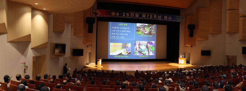 이번 기념식에는 6·25 참전용사, 유족, 시민 등 약 300여 명이 참석했으며, 행사장은 장년층과 고령 참전용사들로 가득 찼다. 무대 전면에는 “6·25 전쟁 제75주년 행사”라는 대형 현수막이 걸렸으며, 애국가 제창과 묵념, 기념사에 이어 다양한 영상 상영과 발표가 진행되었다.
