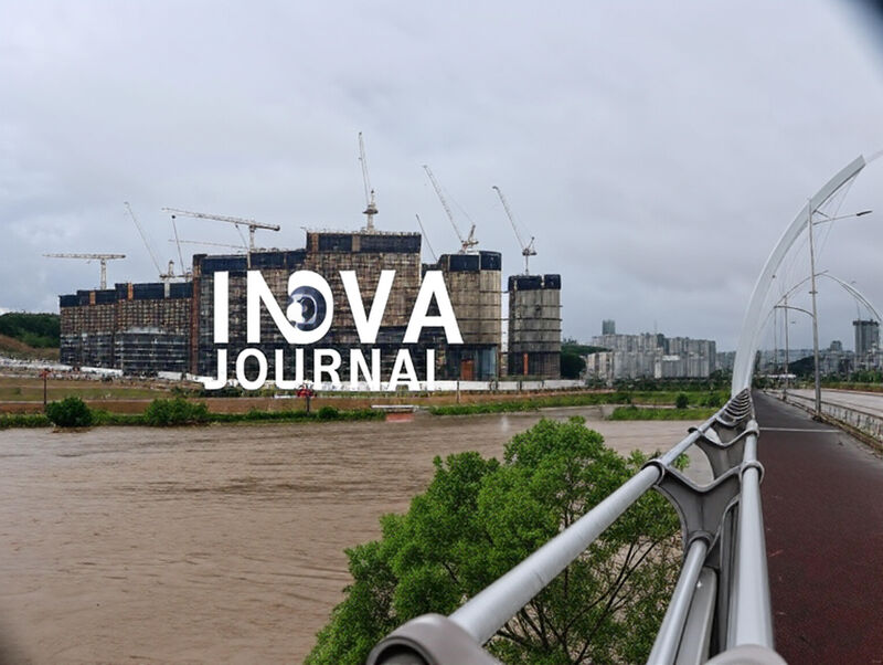 ♦ 2025년 7월 17일 충남 천안시 곡교천대교에서 촬영된 사진은 폭우로 인한 곡교천 수위 급상승과 범람 직전의 탁한 물 상황을 보여주며, 배경 건설 현장의 공사 지연과 침수 위험으로 안전 우려가 높아지고 있다.(사진=이노바저널 DB)